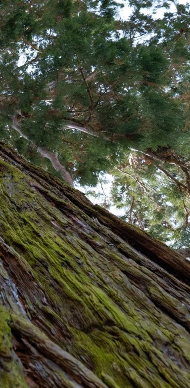 Die Stämme sind säulenförmig und an der Stammbasis auffällig verbreitert. Damit schafft sich der Baum die nötige Standbreite für seine spätere Höhe. Der Berg-Mammutbaum zeichnet sch durch rasches Wachstum aus. Der Jahreszuwachs liefgt zwischen 35 und 50cm, in der Jugend auch bei 80cm.